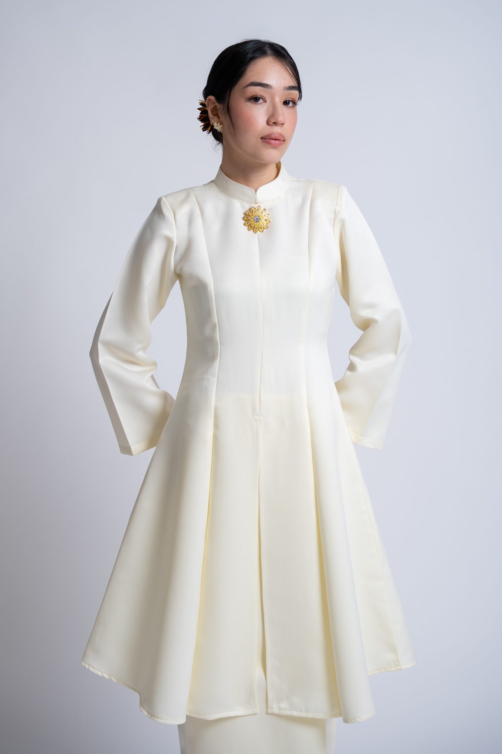 2. Please refer to our off white colour code before purchase any of the off white bridal collections.(Please refer in our T&C highlighted in our instagram highlight) For our ‘Bhaju Melayu’ collection please be aware that the collars may appear slightly darker due to the stiffening material used.